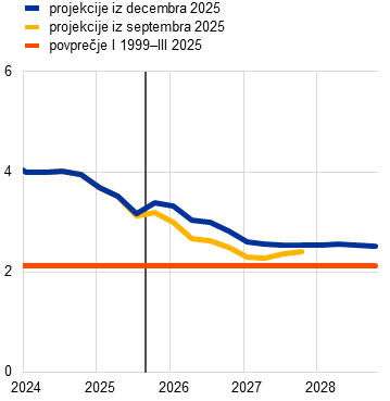 Projekcije strokovnjakov Eurosistema | december 2025 | 1,4 | 1,2 | 1,4 | 1,4 | 2,1 | 1,9 | 1,8 | 2,0 | 2,4 | 2,2 | 1,9 | 2,0 | |