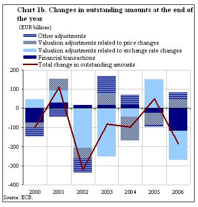The increase in the net liability position between end-2005 and end-2006 was mainly due to revaluation effects resulting from movements in exchange rates (EUR 152 billion) and net financial transactions (EUR 118 billion) (see Chart 1b).