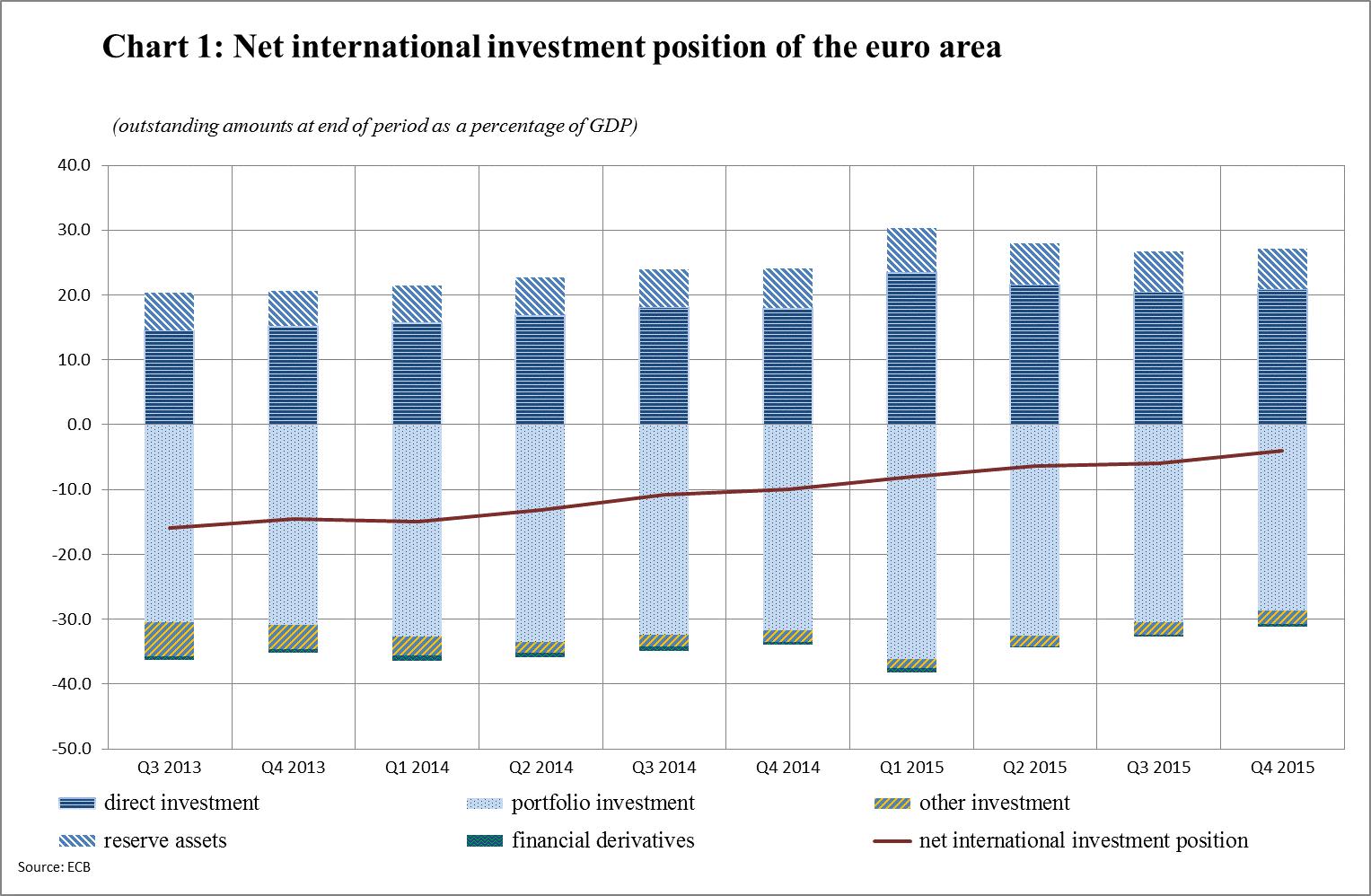 - At the end of 2015 the international investment position of the euro area recorded net liabilities of €0.4 trillion (approximately 4% of euro area GDP).