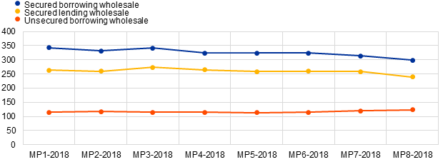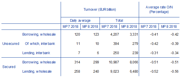 - Daily average borrowing turnover in the unsecured segment increased from €120 billion in the seventh maintenance period of 2018 to €123 billion in the eighth