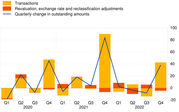 (quarterly transactions in EUR billions; not seasonally adjusted)