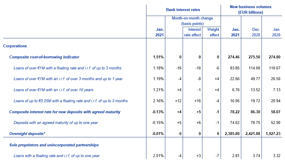 Euro area bank interest rate statistics: January 2021