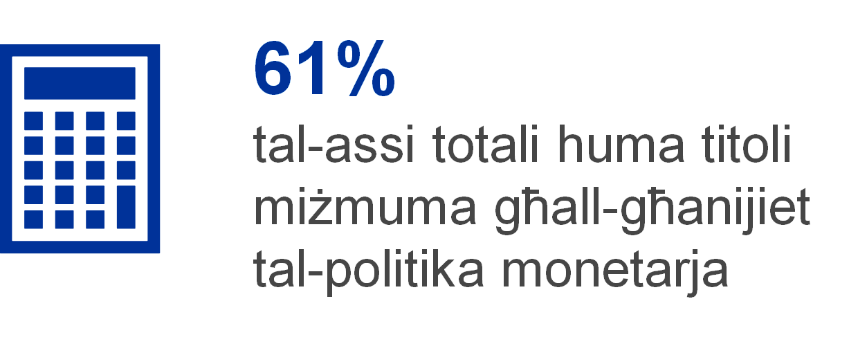 Fl-2020, it-titoli miżmuma għall-għanijiet tal-politika monetarja ġġeneraw madwar 66% tad-dħul nett tal-BĊE mill-imgħax.