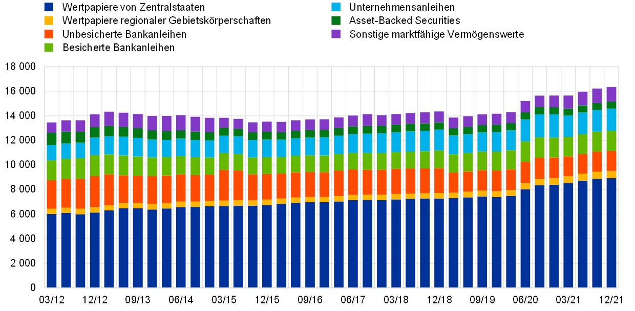 Im Dezember gelangte der EZB-Rat zu der Einschätzung, dass es die fortschreitende Konjunkturerholung und die Annäherung an unser mittelfristiges Inflationsziel zulassen, die Ankäufe von Vermögenswerten in den folgenden Quartalen schrittweise zu verringern. Er kündigte an, dass die Nettoankäufe im Rahmen des PEPP im März 2022 enden und seine übrigen Programme zum Ankauf von Vermögenswerten allmählich zurückgefahren werden.