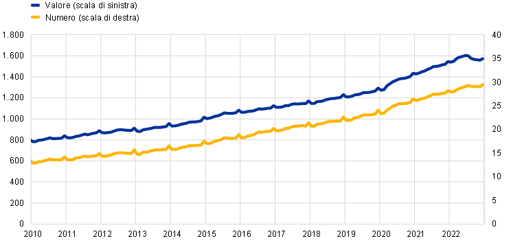 Per maggior informazioni sull’analisi degli AIF, cfr. “Non-bank financial intermediation in the euro area: implications for monetary policy transmission and key vulnerabilities”, Occasional Paper Series, n. 270, BCE, rivisto a dicembre 2021.