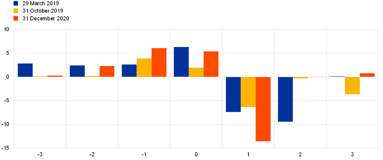 - The movement in the trade balance ranges from a record deficit in the run-up to the original 29 March 2019 Brexit deadline to a surplus of around 15% in the second quarter of 2020, when a pandemic-related national lockdown and severe supply chain disruptions caused UK import volumes to contract sharply. The trade balance has also been significantly impacted since the start of the pandemic by the collapse in trade in travel services, a sector in which the United Kingdom has been the single most significant contributor to the euro area’s net trade surplus; see the box entitled “Impact of the COVID-19 lockdown on trade in travel services”, Economic Bulletin, Issue 4, ECB, 2020.