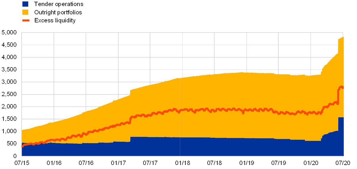 The levels of central bank liquidity in the banking system continued to rise during the third and fourth maintenance periods of 2020. This was largely due to the settlement of the targeted long-term refinancing operations (TLTRO III) and the asset purchases conducted under the asset purchase programme (APP) and the pandemic emergency purchase programme (PEPP). The Governing Council of the ECB decided on 4 June to increase the size of the PEPP envelope by €600 billion to €1,350 billion and to extend the purchase horizon until at least the end of June 2021. Moreover, it was decided that the maturing principal payments from securities purchased under the PEPP will be reinvested until at least the end of 2022.