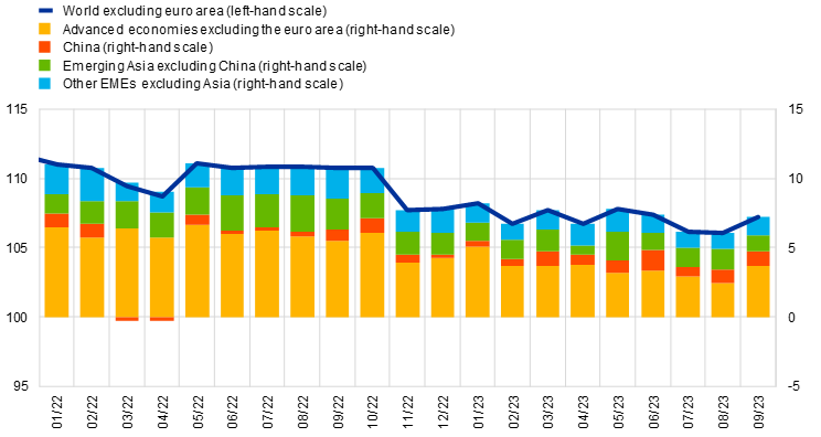 Given the focus of this section on developments in the global environment, all references to world and/or global aggregate economic indicators exclude the euro area.