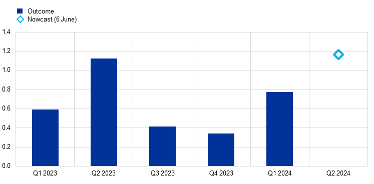 This outlook is broadly reflected in the June 2024 Eurosystem staff macroeconomic projections for the euro area, which foresee annual real GDP growth of 0.9% in 2024, picking up to 1.4% and 1.6% in 2025 and 2026 respectively.[4]