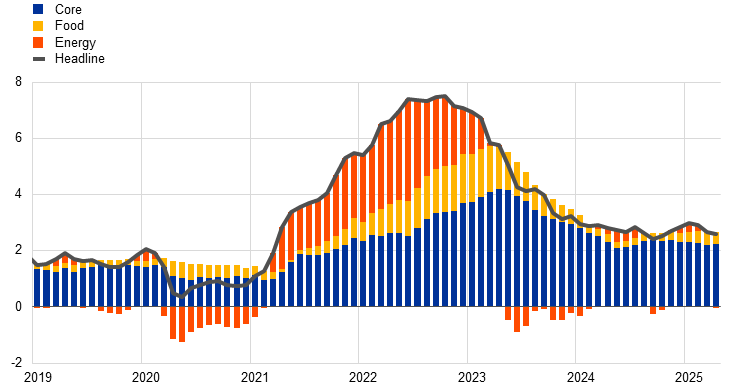 Sources: ECB calculations and Eurosystem staff macroeconomic projections for the euro area, June 2025.