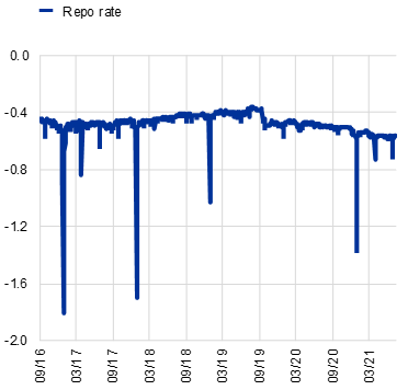 For the euro area, the variations in repos are also reflected in repo volumes and rates at a daily frequency. The reduced repo volumes have a significant impact on pricing with (average) repo rates declining by 1.5-2.0% at year-end and to a smaller but noticeable degree at quarter-end.[8] There is further evidence from high-frequency transaction-level data that variations in both the outstanding amounts of repos and in the associated repo rates are due to deliberate actions taken by banks ahead of regulatory reporting dates. In the days preceding year-end, repo volumes decline by 25% while at quarter-end reductions of 12.5% are seen. Specifically, at year-ends (quarter-ends) banks start to contract repo volumes 6-7 (2‑3) days before the reporting date and require more than 10 (7) days until pre-reporting date volumes are reached.[9] Such strong variations are not only relevant from a regulatory reporting perspective but can also be detrimental to market functioning.[10]