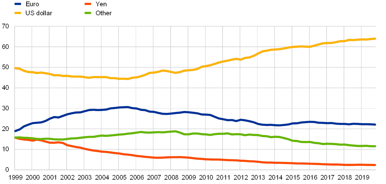 - [16]The share of other currencies declined marginally to stand at approximately 16% in 2019.