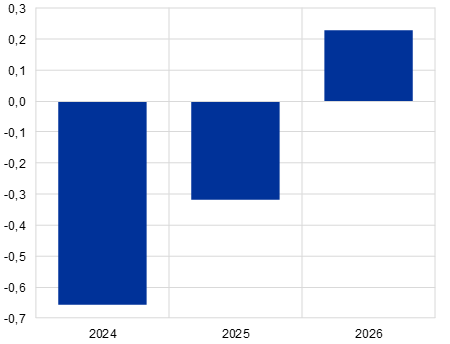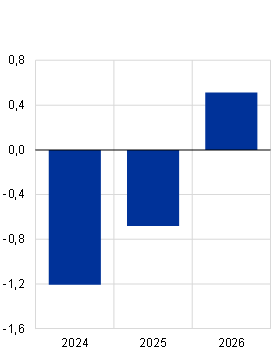 V porovnání s projekcemi ze září 2023 byl růst reálného HDP revidován směrem dolů o 0,1 procentního bodu pro rok 2023 a o 0,2 procentního bodu pro rok 2024 a pro rok 2025 zůstal beze změny. Revize odrážejí slabší hodnoty údajů za třetí čtvrtletí roku 2023 a zhoršující se ukazatele z výběrových šetření. Nedávné negativnější hodnoty a výhledové ukazatele vývozu s sebou nesou revize čistého vývozu směrem dolů v letech 2023 až 2025, které jsou částečně vyváženy malými revizemi domácí poptávky směrem nahoru.