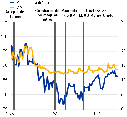 11. Véase Ferrari Minesso, M., Lappe, M.-S. y Rößler, D., «El riesgo geopolítico y los precios del petróleo», Boletín Económico, número 8, Banco Central Europeo, 2023.