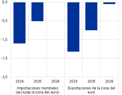 En comparación con las proyecciones de diciembre de 2023, el crecimiento del PIB real se ha revisado a la baja en 0,2 puntos porcentuales para 2024, no se ha modificado para 2025 y se ha revisado al alza en 0,1 puntos porcentuales para 2026. La revisión para 2024 refleja los efectos de arrastre derivados de la reciente publicación de datos de 2023 peores de lo previsto y una revisión a la baja del crecimiento trimestral del PIB a corto plazo ante la persistente atonía de los indicadores de opinión. Los datos más negativos de lo previsto observados, también en el caso de los indicadores prospectivos procedentes de las encuestas a empresas y hogares, se traducen en revisiones a la baja de la demanda interna, que se ven compensadas, en parte, por pequeñas revisiones al alza de la demanda exterior neta. El menor lastre de las condiciones de financiación y el descenso de los precios de las materias primas han propiciado ligeras revisiones al alza de las proyecciones de consumo privado e inversión para 2026.