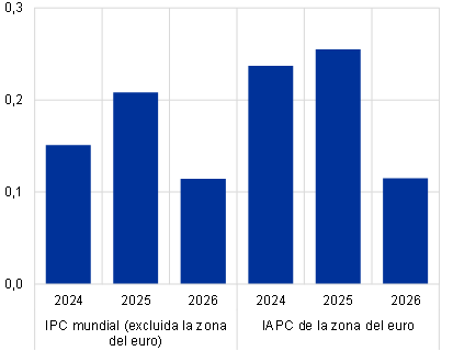 7. Las referencias a indicadores económicos mundiales o agregados a nivel internacional de este recuadro excluyen la zona del euro.